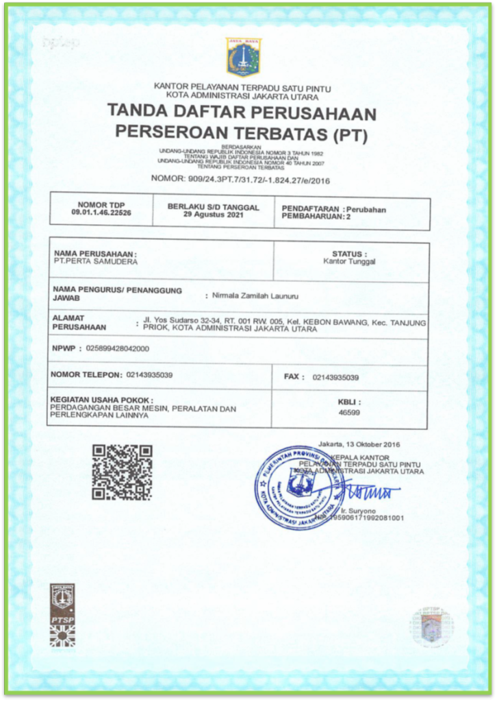 PT.Perta Samudera didirikan di Jakarta pada tanggal 30 Juni 2006, dengan diawali dilingkungan Pertamina, kini kami sudah menjadi rekanan diberbagai Lembaga usaha baik milik pemerintah maupun swasta lainnya.